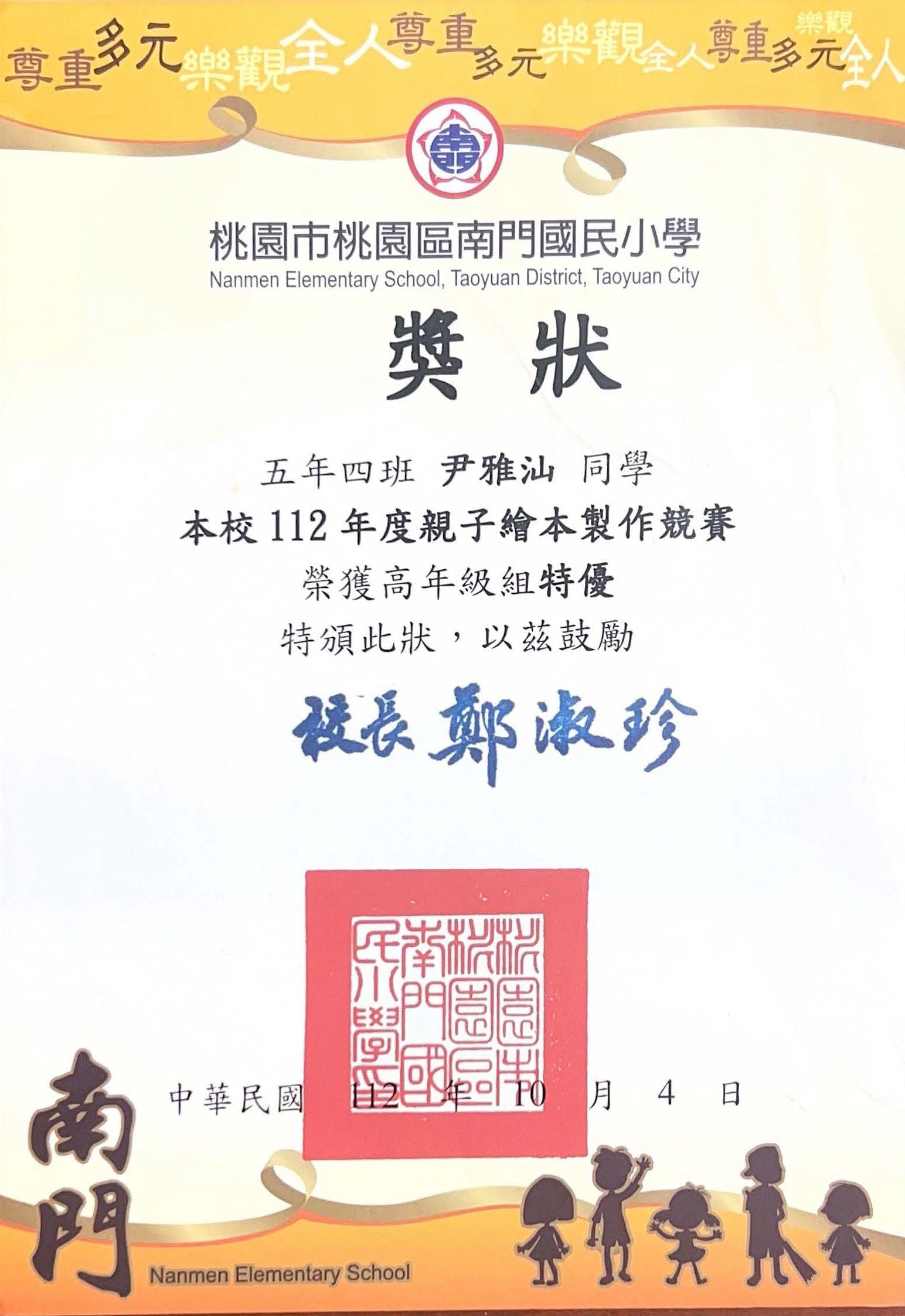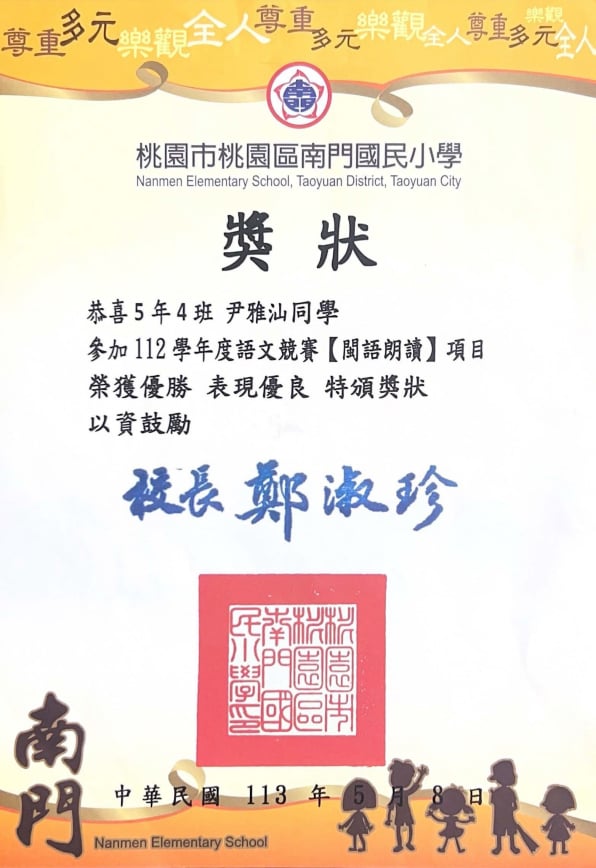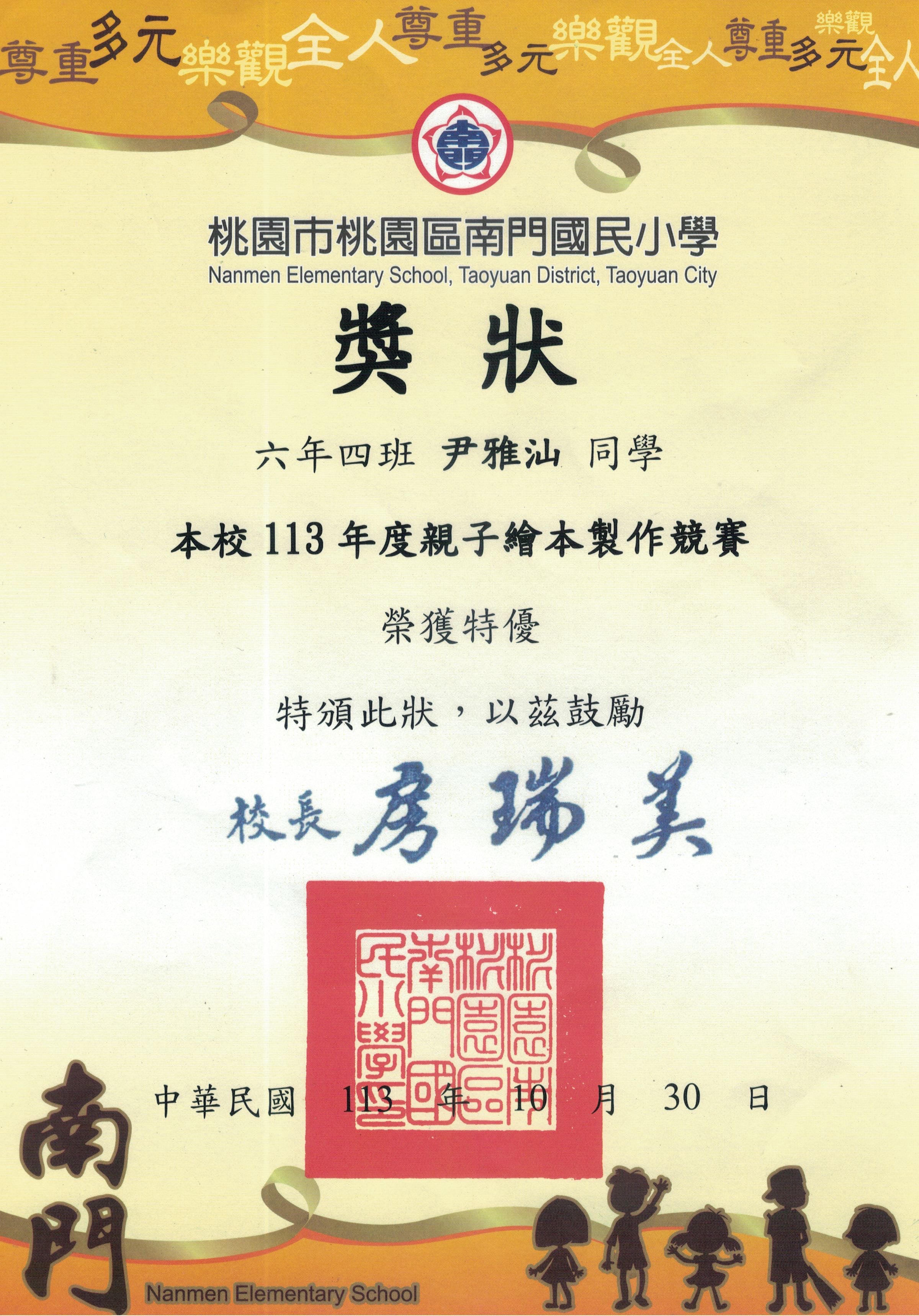 桃園市親子繪本比賽連三年得獎,校內連三年特優,桃園市教育局獎第二名與佳作
