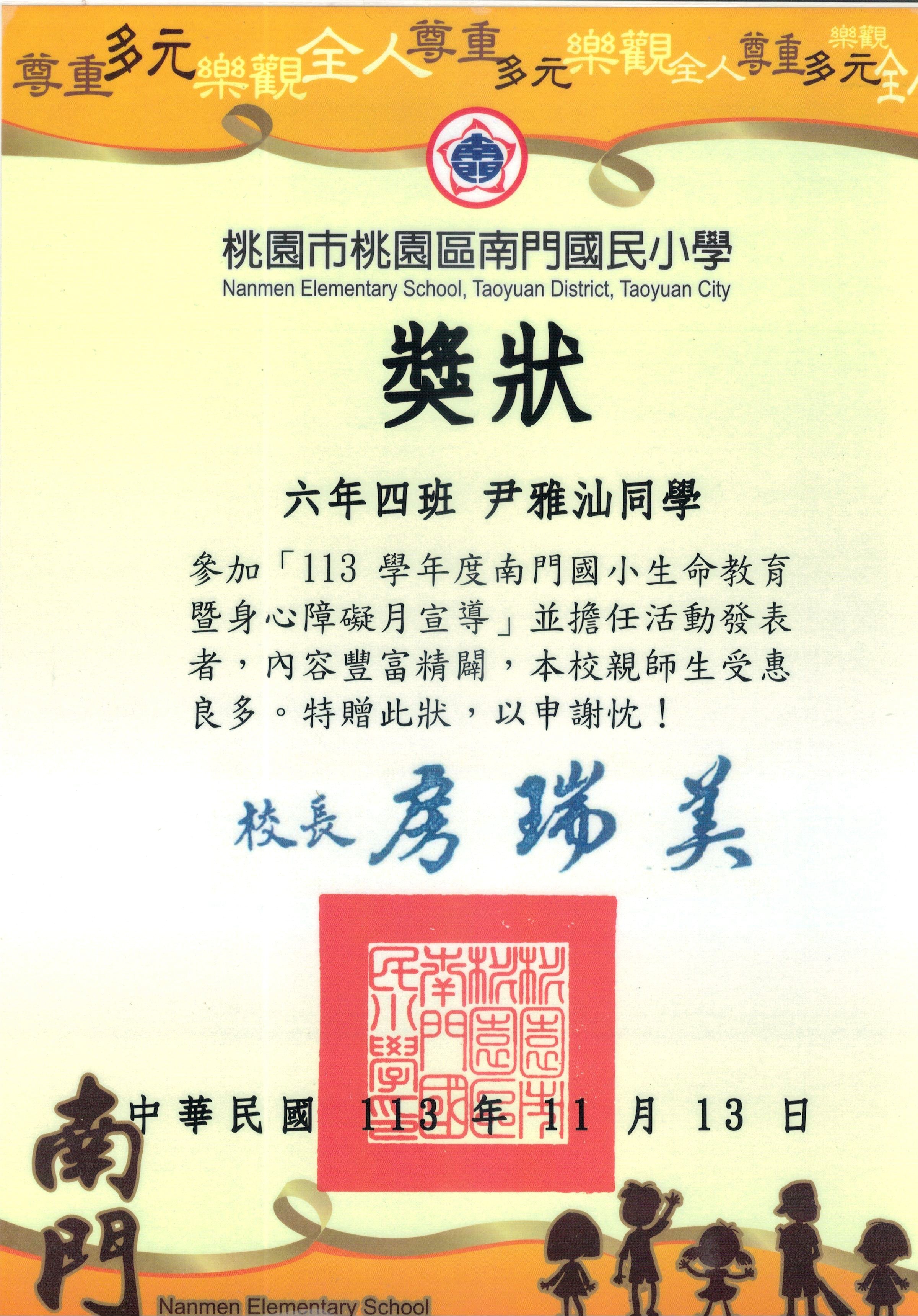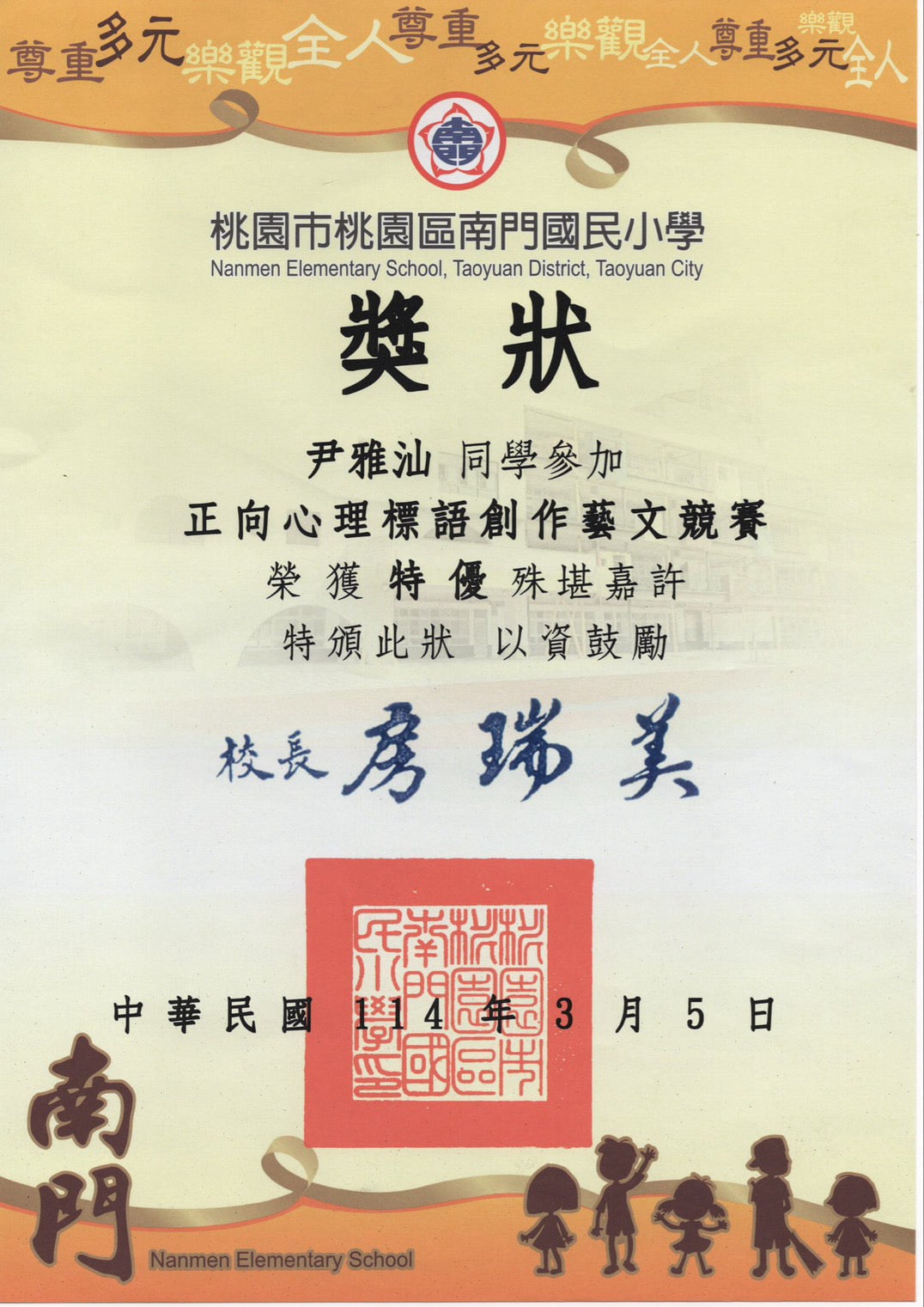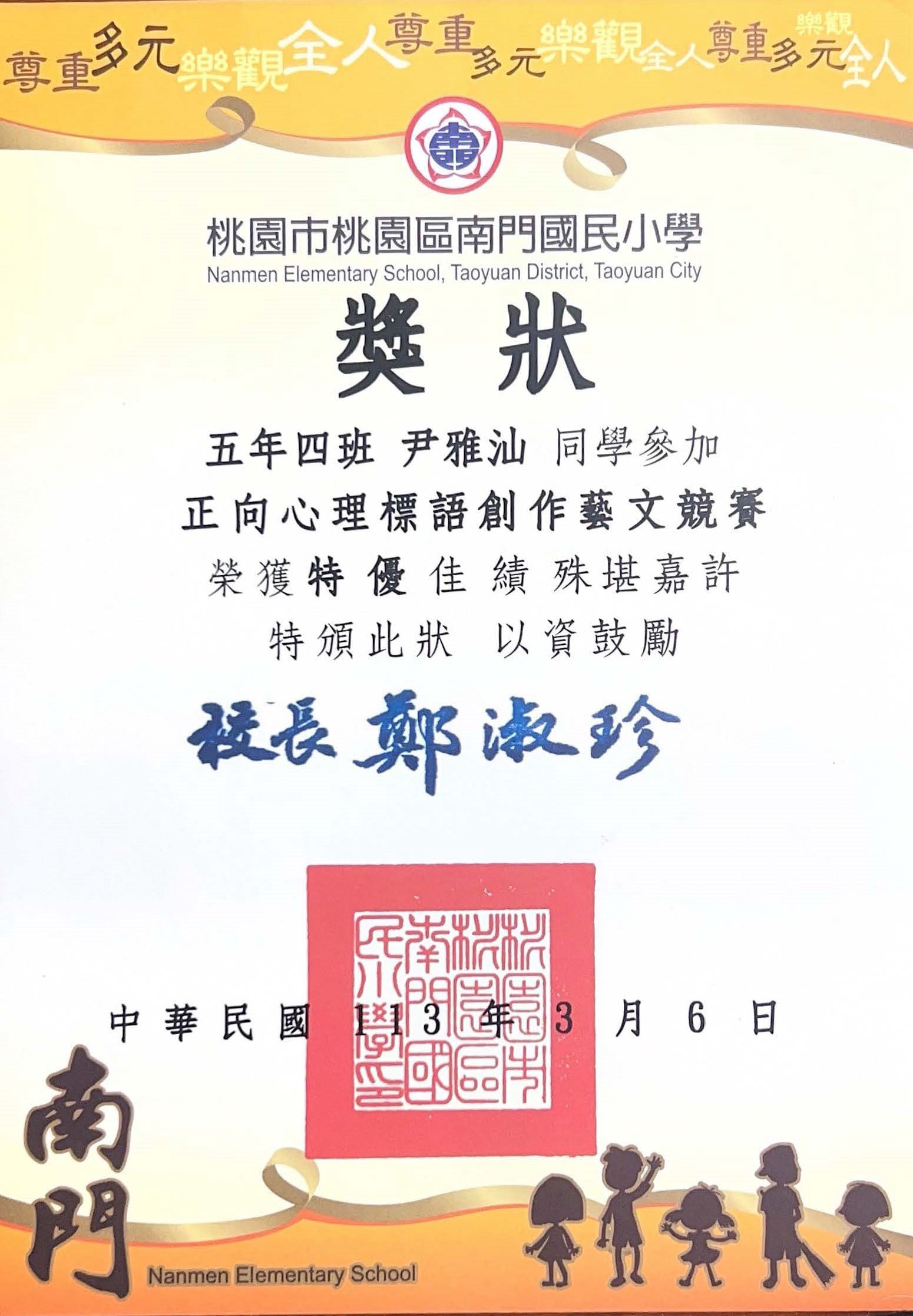 桃園市親子繪本比賽連三年得獎,校內連三年特優,桃園市教育局獎第二名與佳作