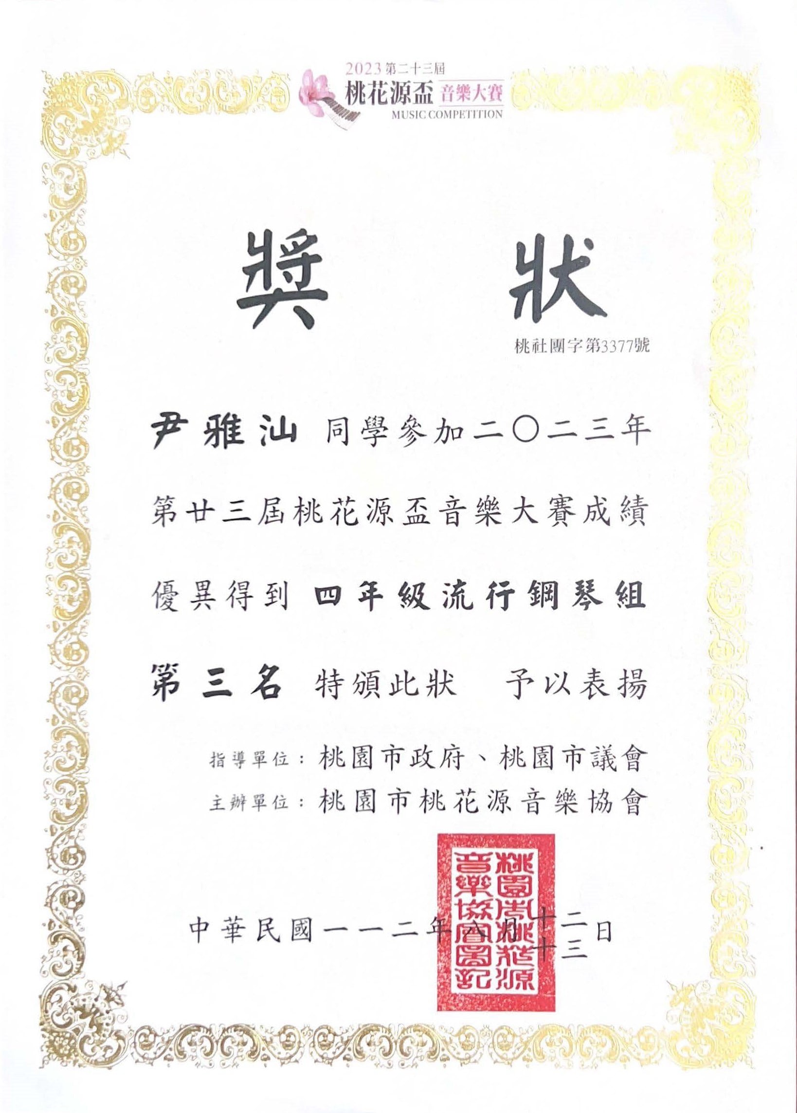 開始學鋼琴,從琴鍵開始築夢,雅汕用雙手彈奏出努力與堅持的樂章,低年級獲得桃花源鋼琴比賽優等,中高年級連續兩年榮獲第三名