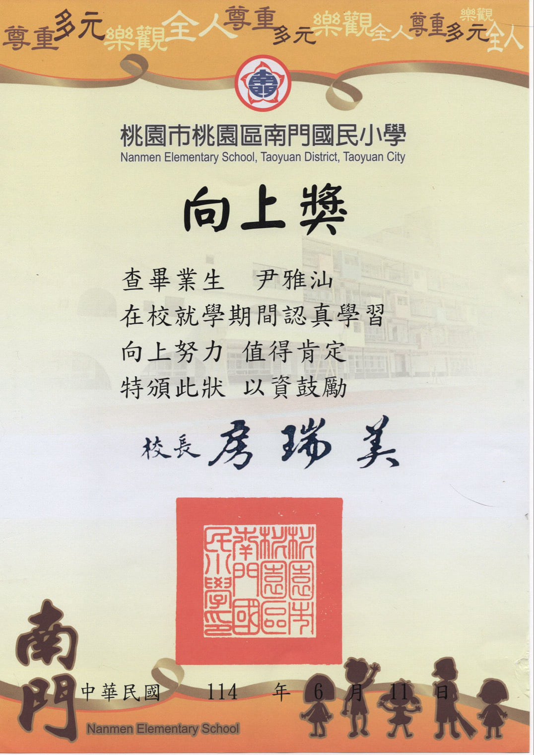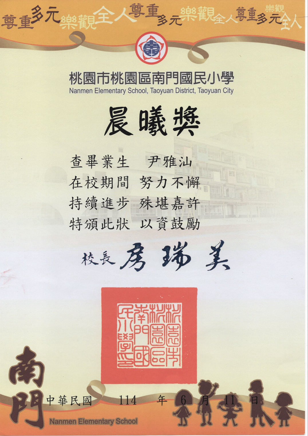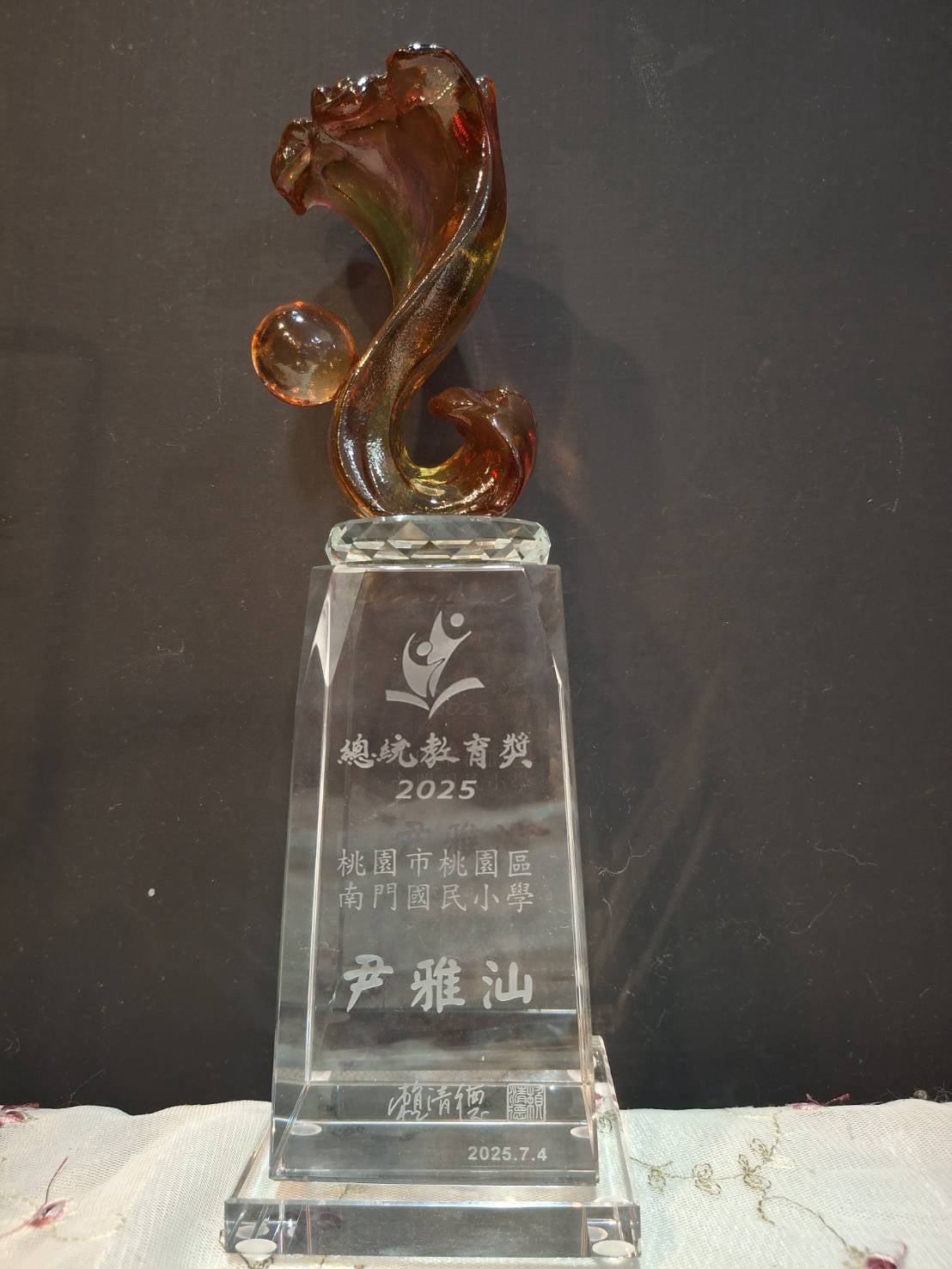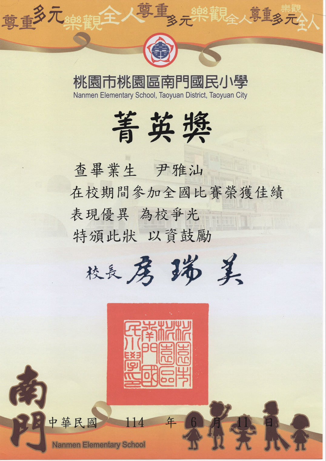 7月時榮獲總統教育獎國小組,受邀至桃園市府與總統府頒獎