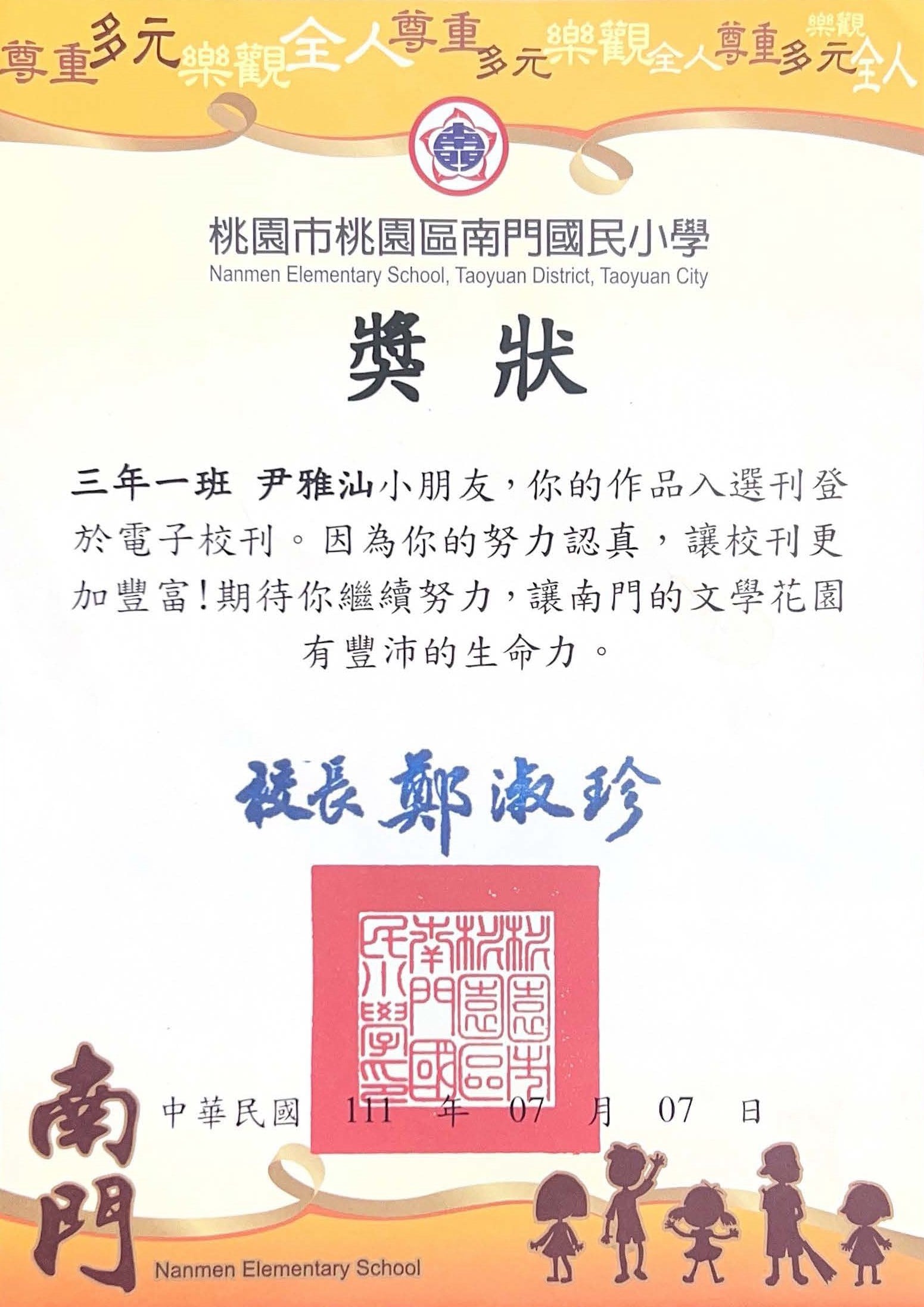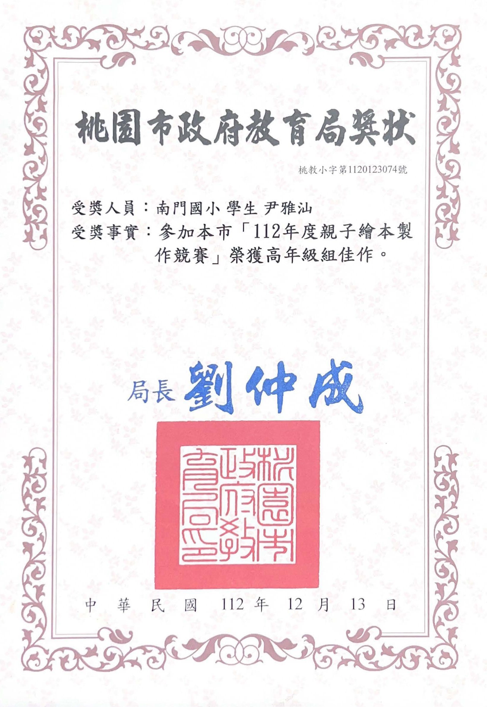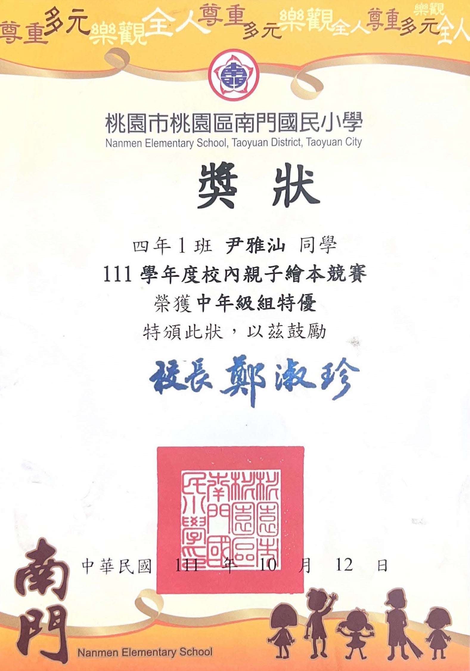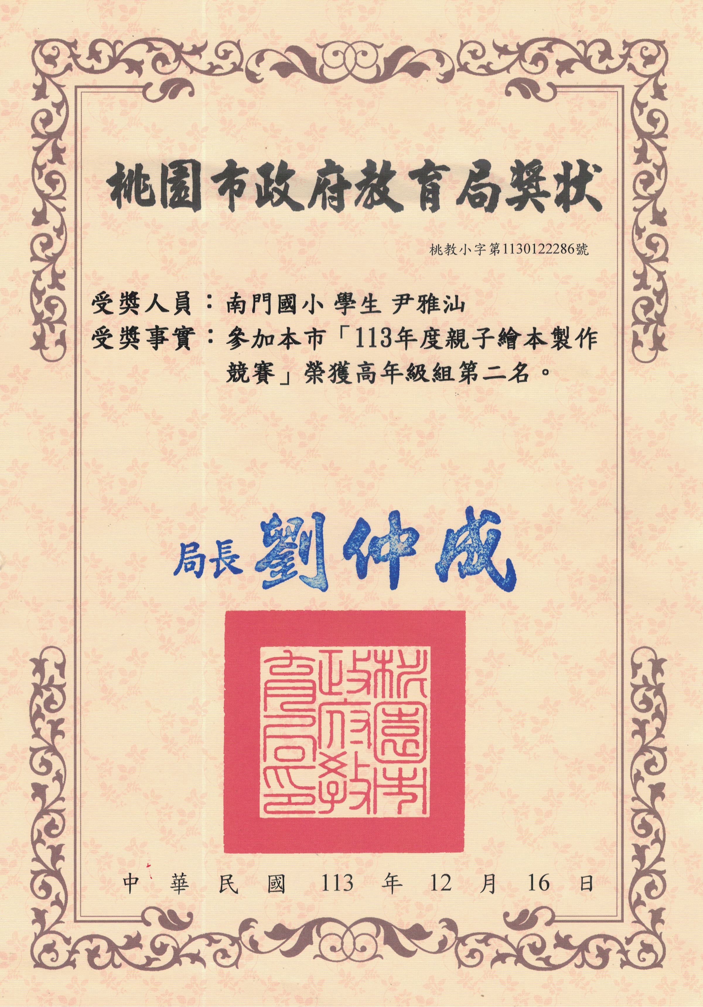 桃園市親子繪本比賽連三年得獎,校內連三年特優,桃園市教育局獎第二名與佳作