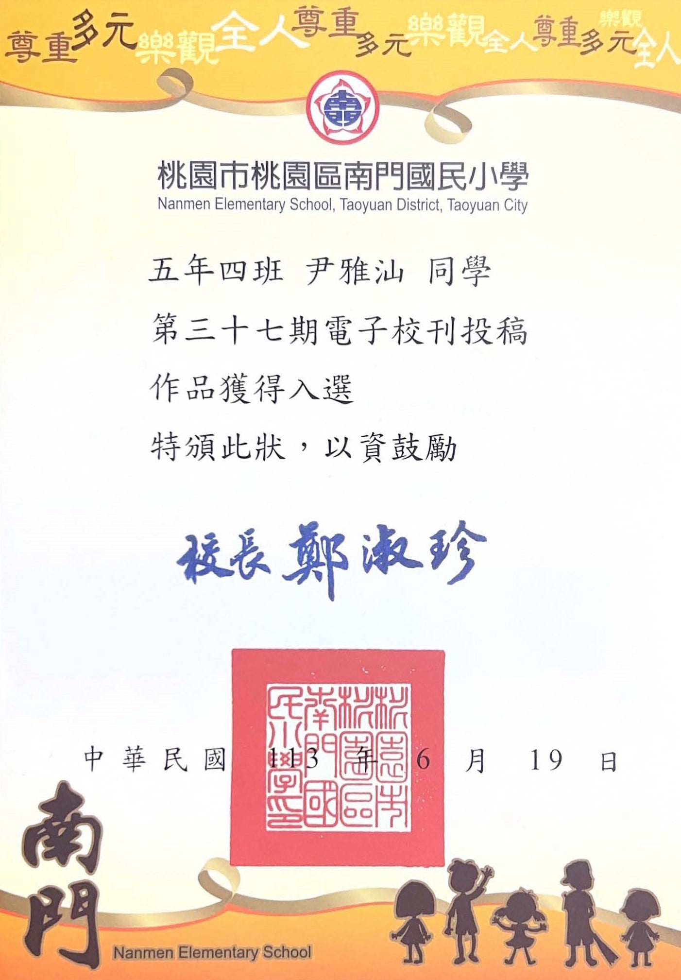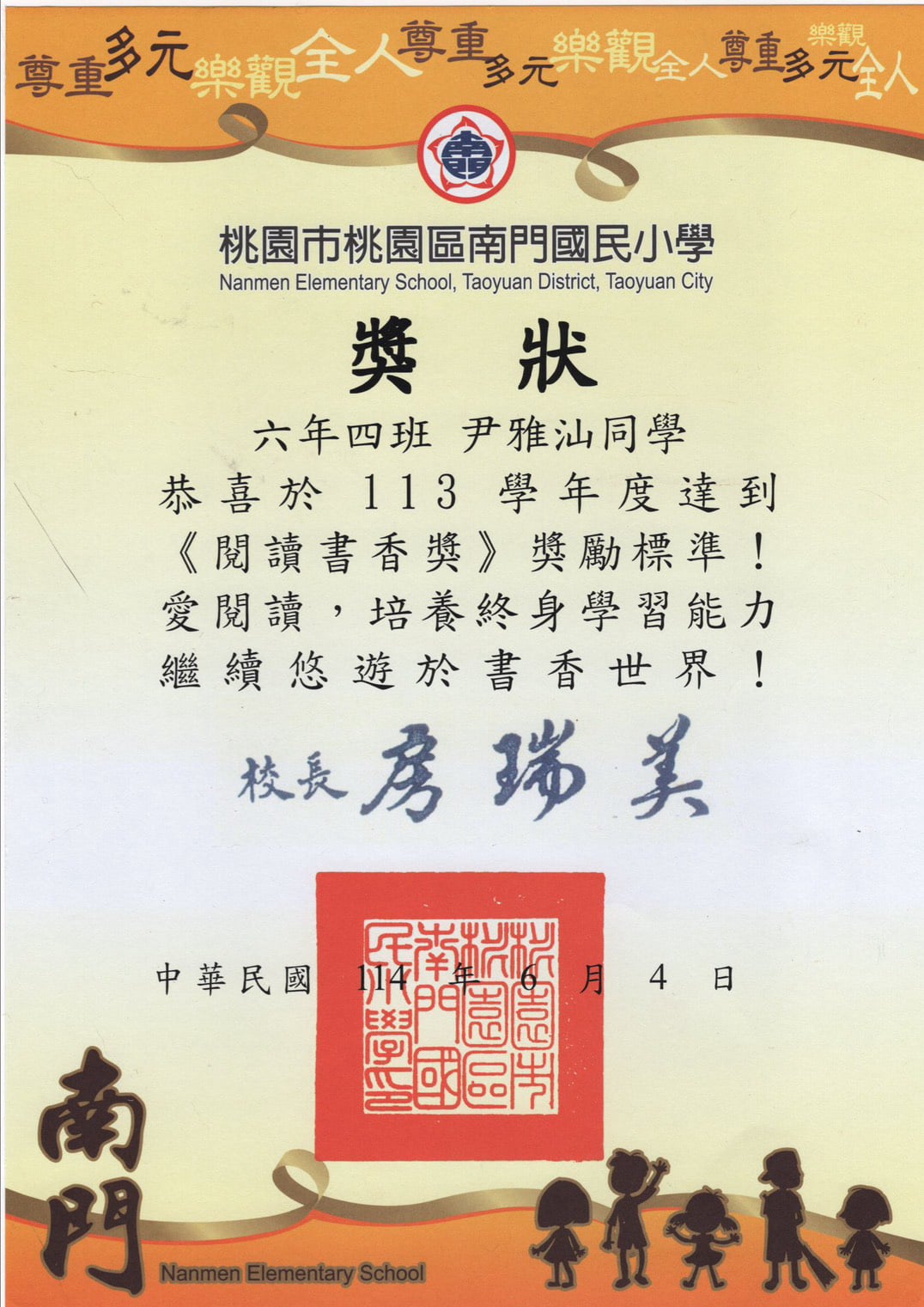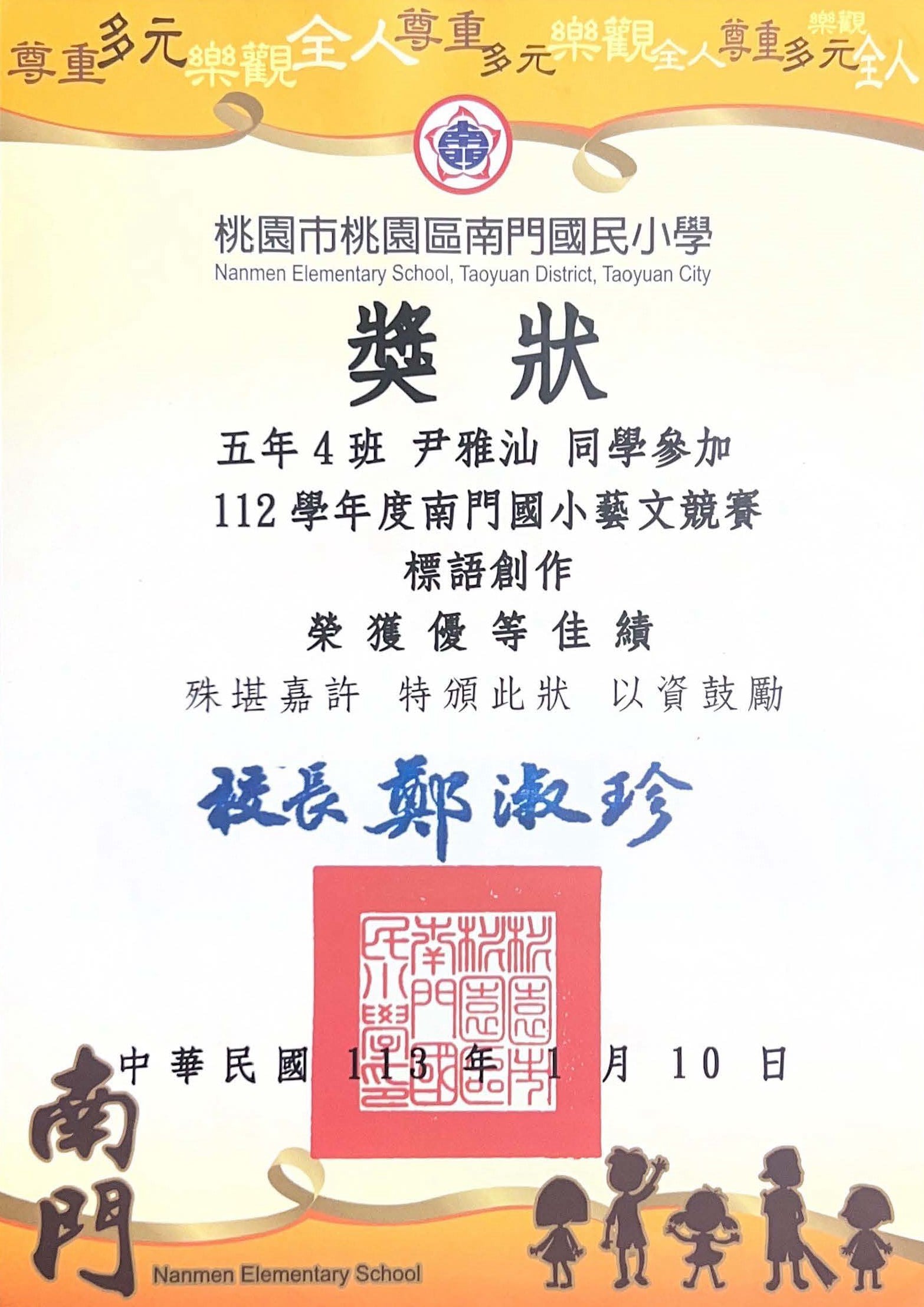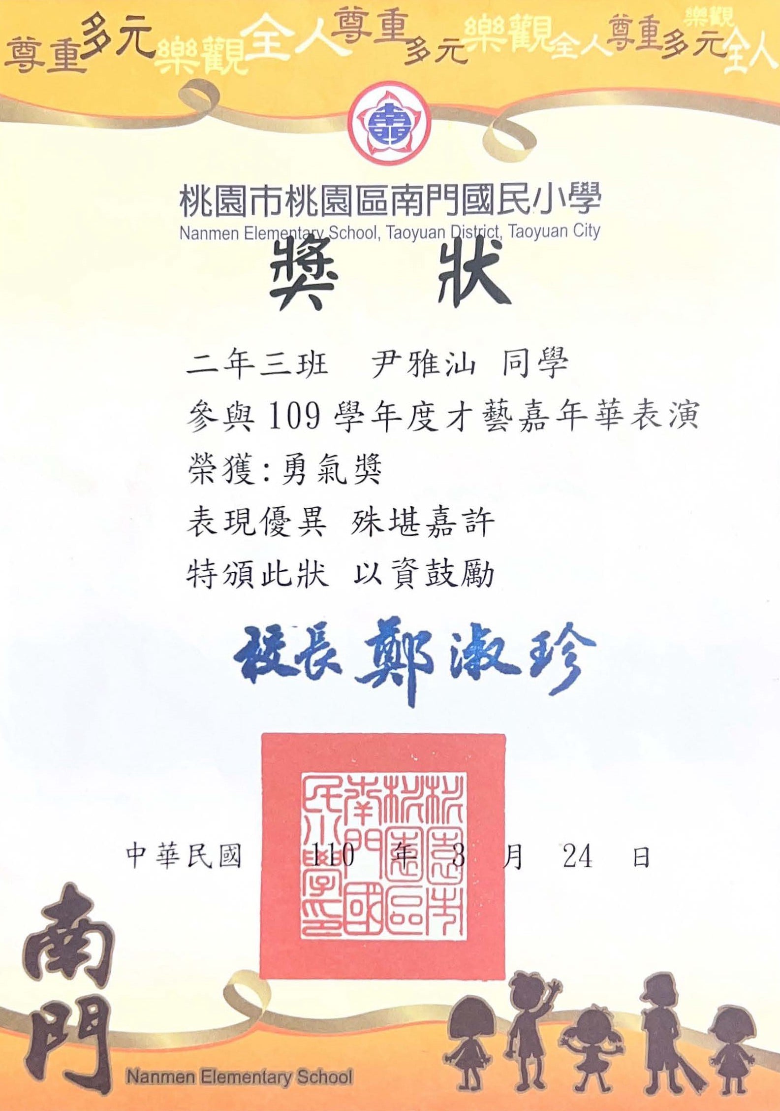 桃園市親子繪本比賽連三年得獎,校內連三年特優,桃園市教育局獎第二名與佳作
