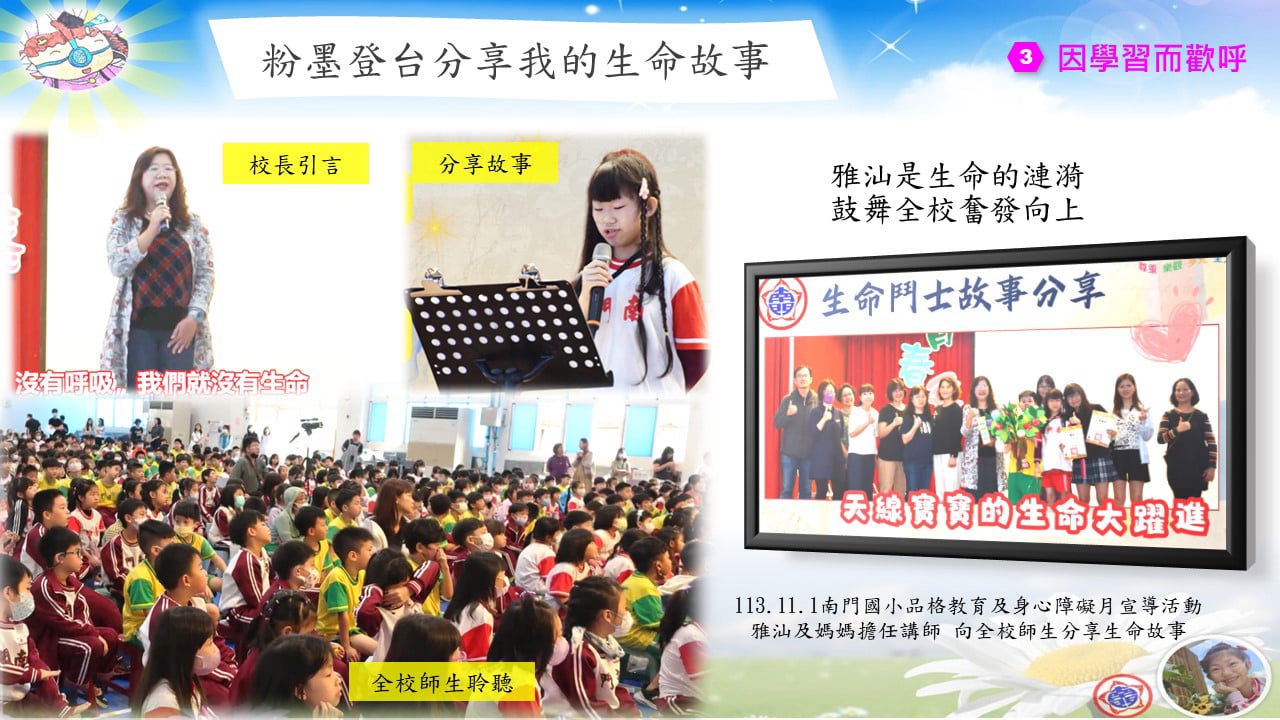 4月時在南門國小演講,7月時在興國國小演講