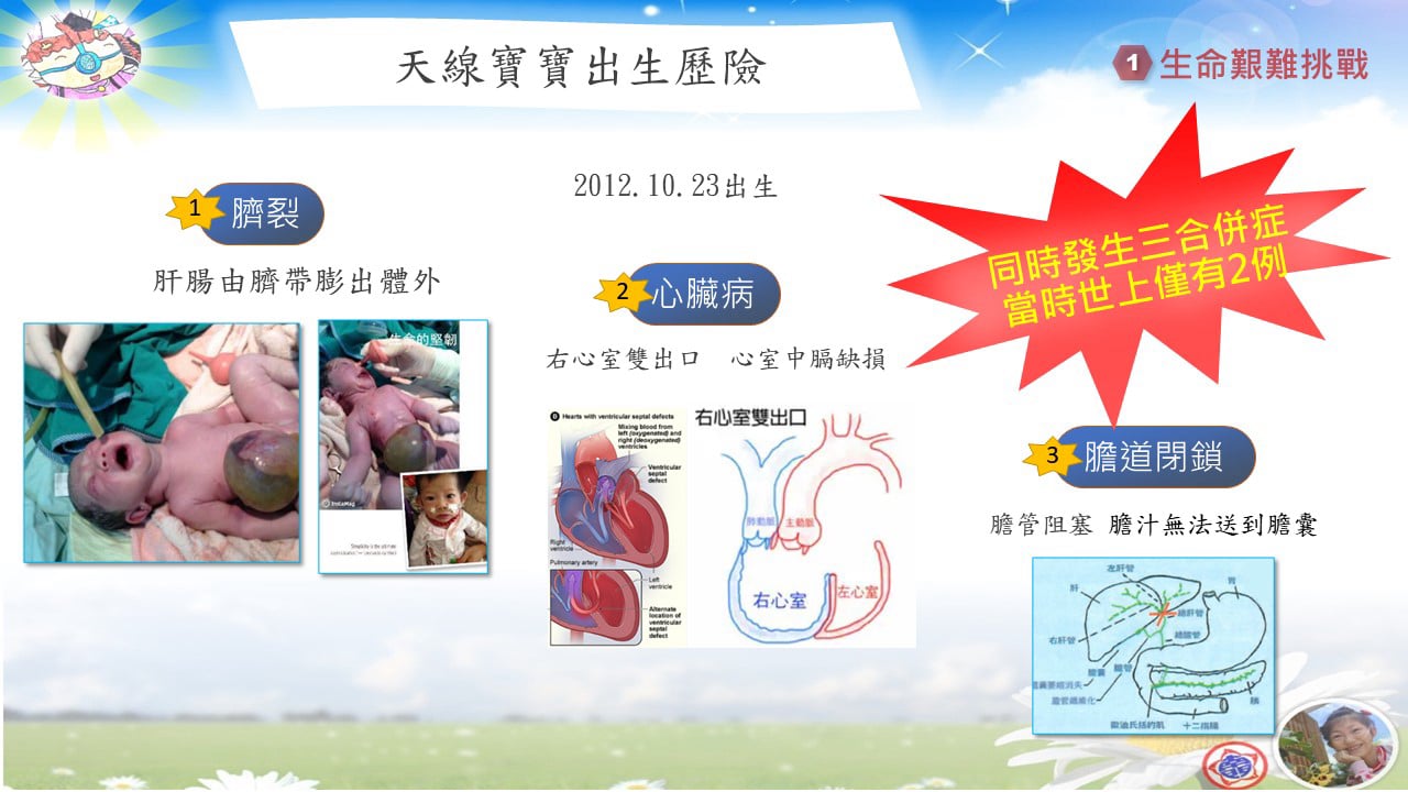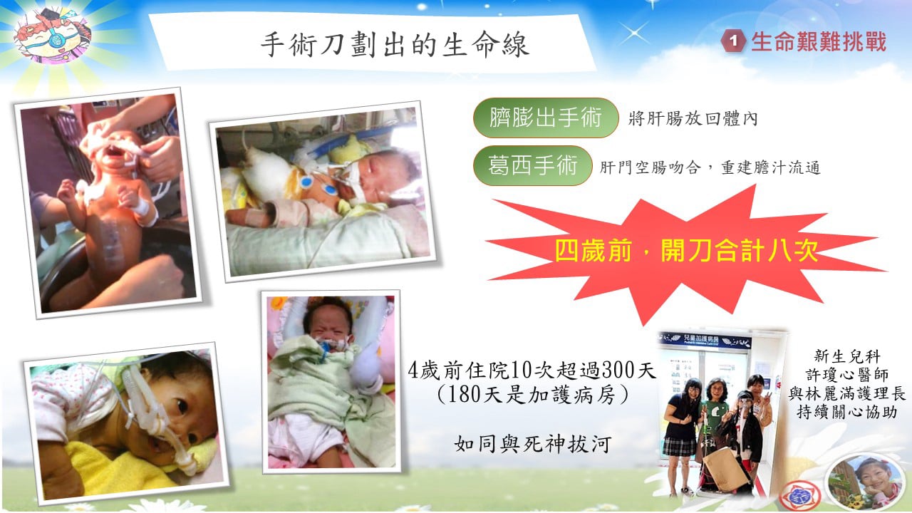 我是雅汕,我的出生是一個奇蹟。剛來到這個世界時,醫生曾說我可能只能活到四歲。因此生命最初的幾年,我幾乎每天都靠著營養針維生,馬偕醫院的嬰兒加護病房成了我第二個家。那段日子,氧氣機與氧氣管形影不離,我像是一個裝了天線的寶寶,父母也因為我的病況,幾度淚眼難眠。